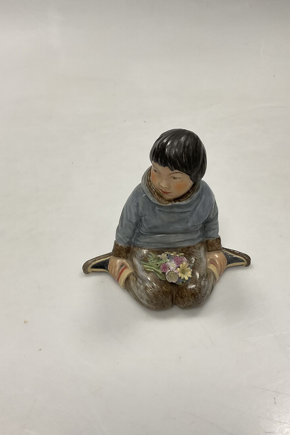 Royal Copenhagen Overglaze Figurine - Boy with Flowers from Greenland No. 12419