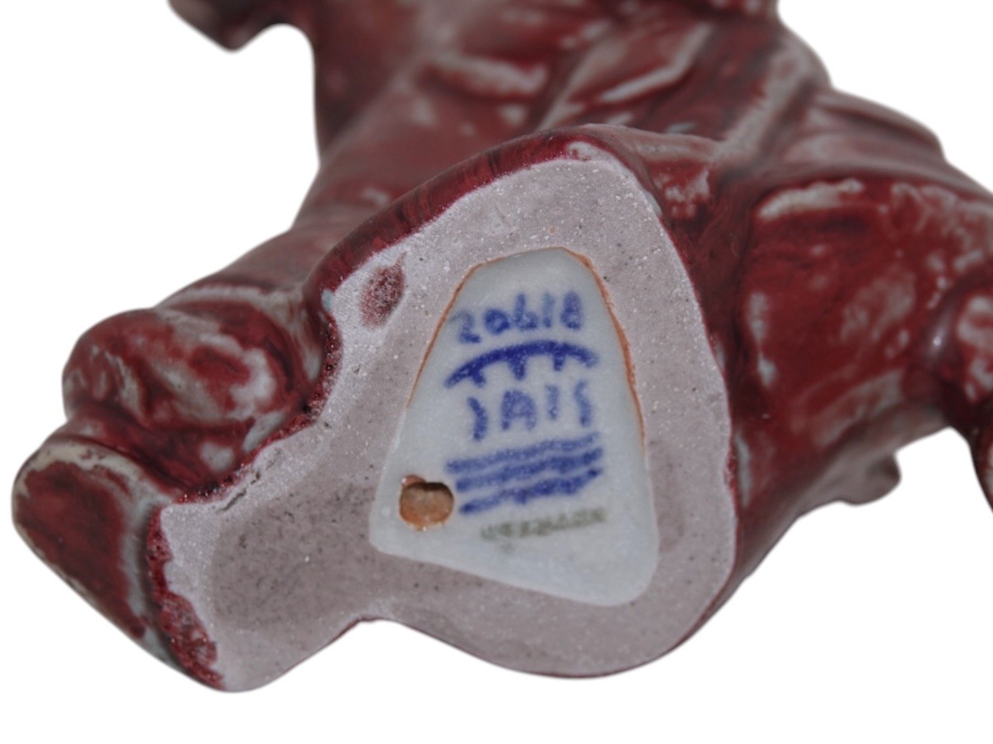 Royal Copenhagen art pottery figurine with ox blood glaze, Judas with lightning.