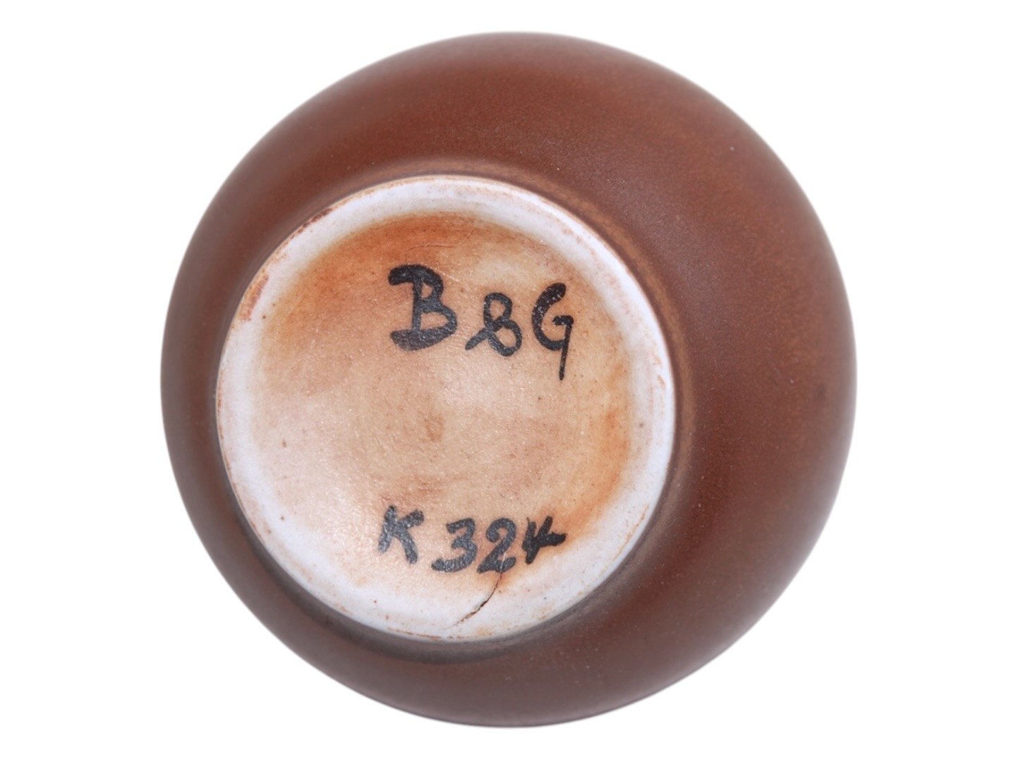 Small Bing & Grondahl ceramic vase in a modern simple style with a light brown glaze.