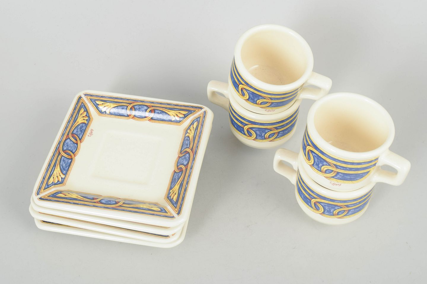 Tiffany Boutique, set of four espresso cups with saucers.