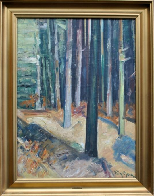 Berg, August Munthe (1858 - 1946) Norway: Forest. Oil on canvas. Signed. H: 68 cm. W: 52 cm.