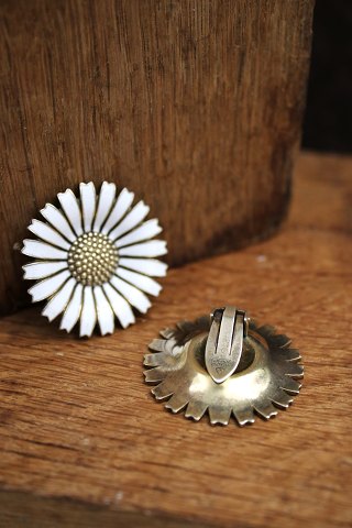 Old Marguerite / Daisy earrings in sterling silver, white enamel and with clip back from A. Michaelsen. Dia.: 3.2cm.