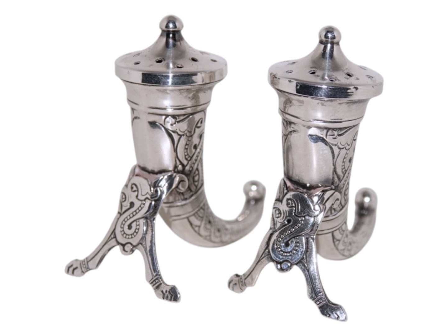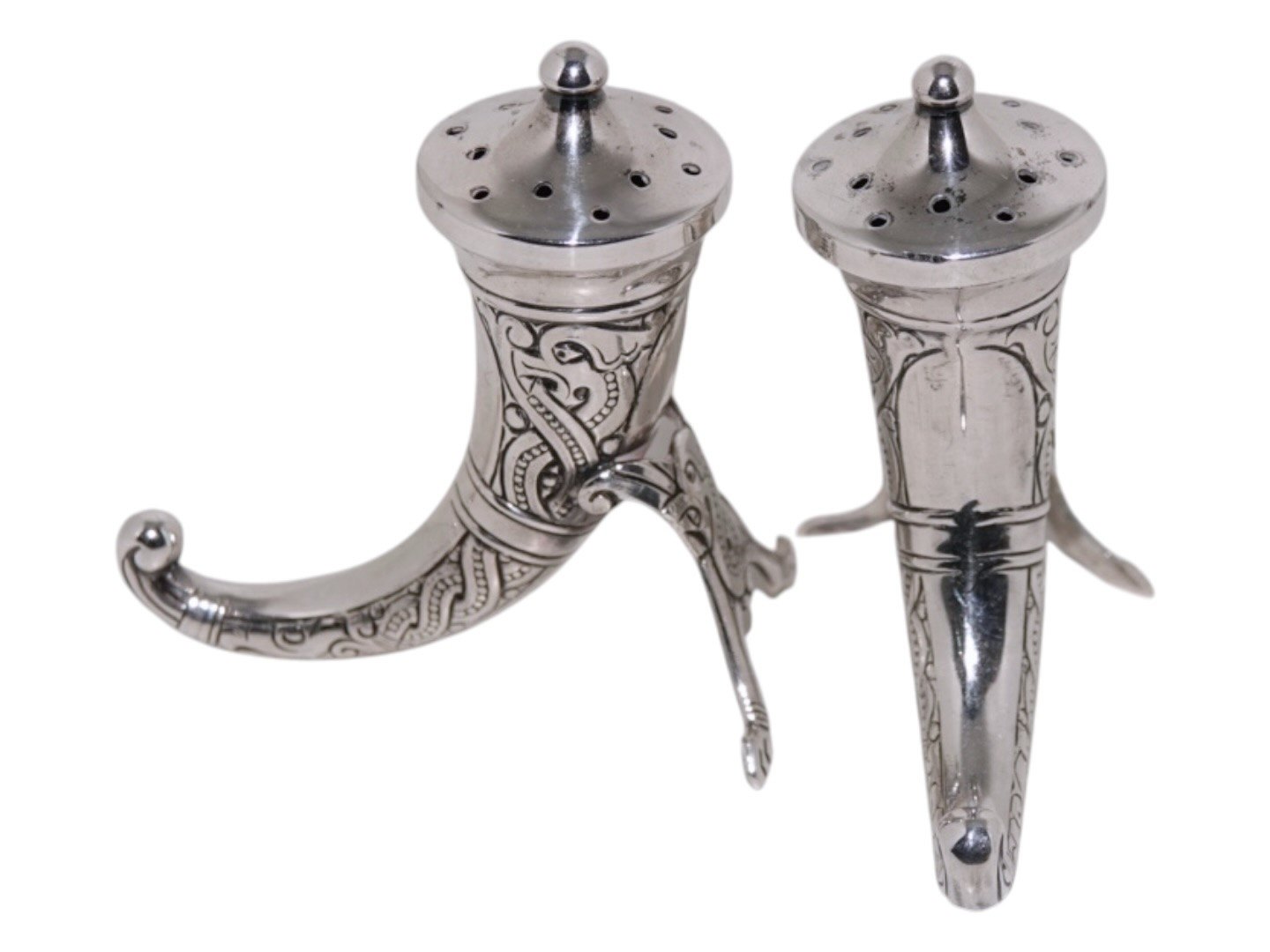Theodor Olsen Norway, silver salt and pepper shaker shaped as viking horns.