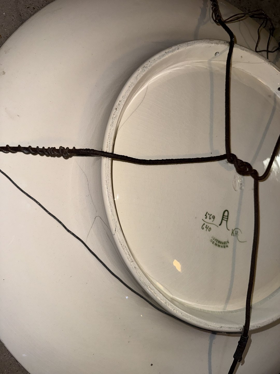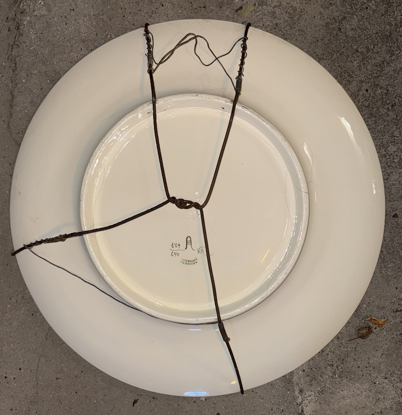 Large earthenware dish from Aluminia, decorated by Christian Joachim with a motif of a golden pheasant surrounded by flowers and leaves. Factory mark on the back. As can be seen from the photos, there are several cracks after damage to the dish. Dimensions: Ø. 45.5 cm PICK-UP AT THE STORAGE ON FREDERIKSBERG.SHIPPING NOT POSSIBLE