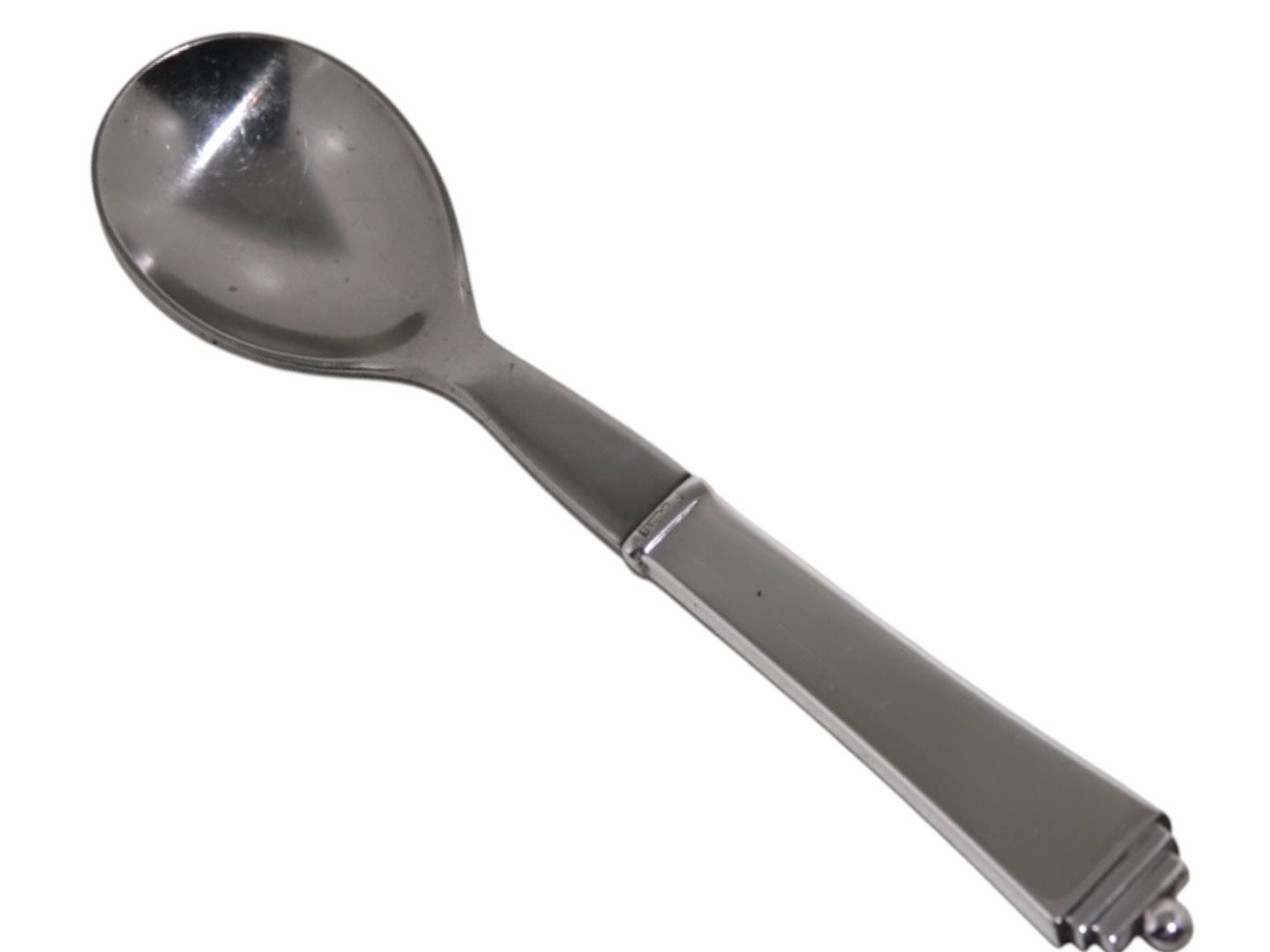 Georg Jensen Pyramid sterling silver and stainless steel, egg spoon.