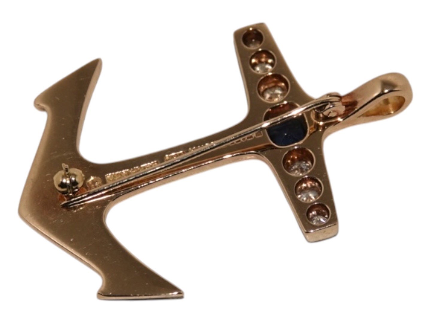 Large anchor pendantwith a rather large sapphire and six large diamonds