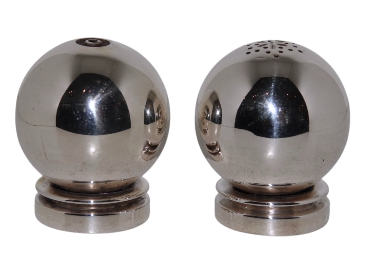 Georg Jensen sterling silver salt shaker and pepper shaker.