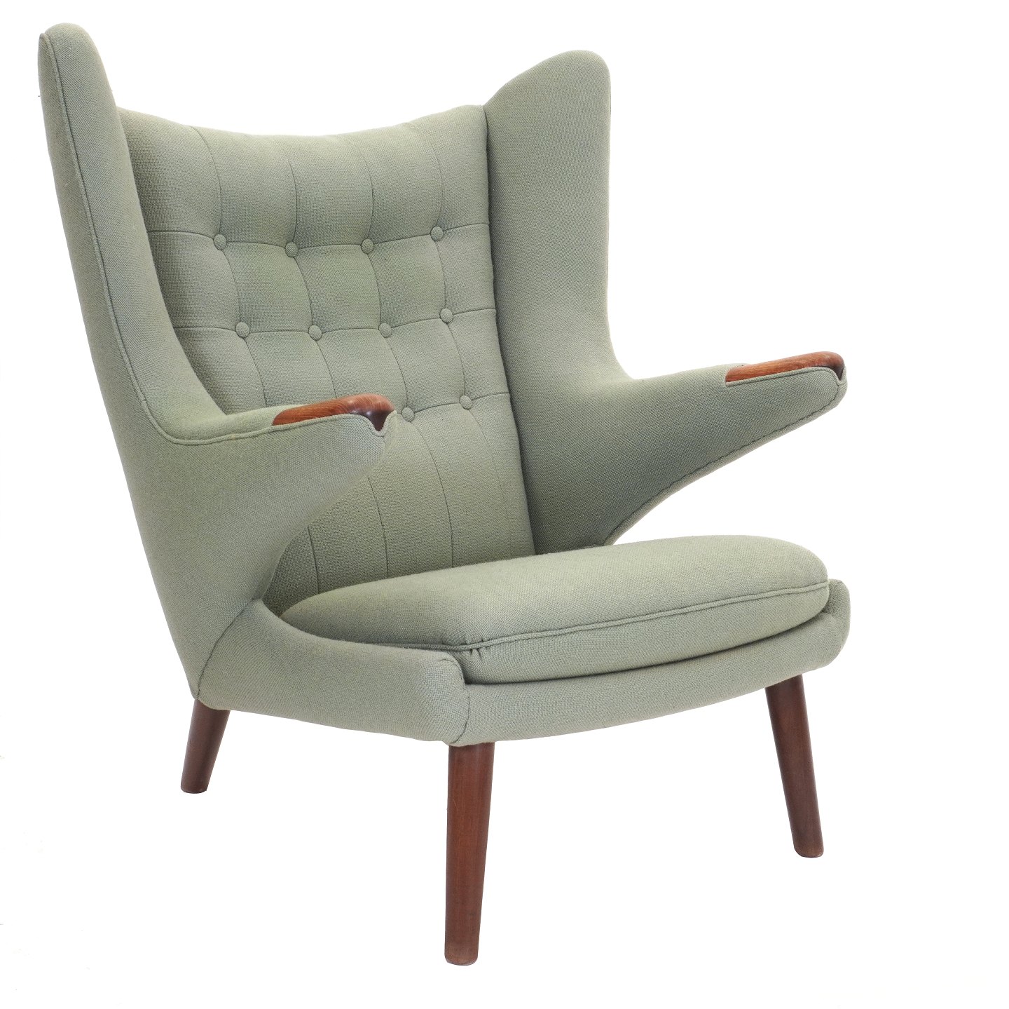 Hans J. Wegner “Papa Bear”. Wingback teak easy chair with matching stool. AP 19 and AP 29