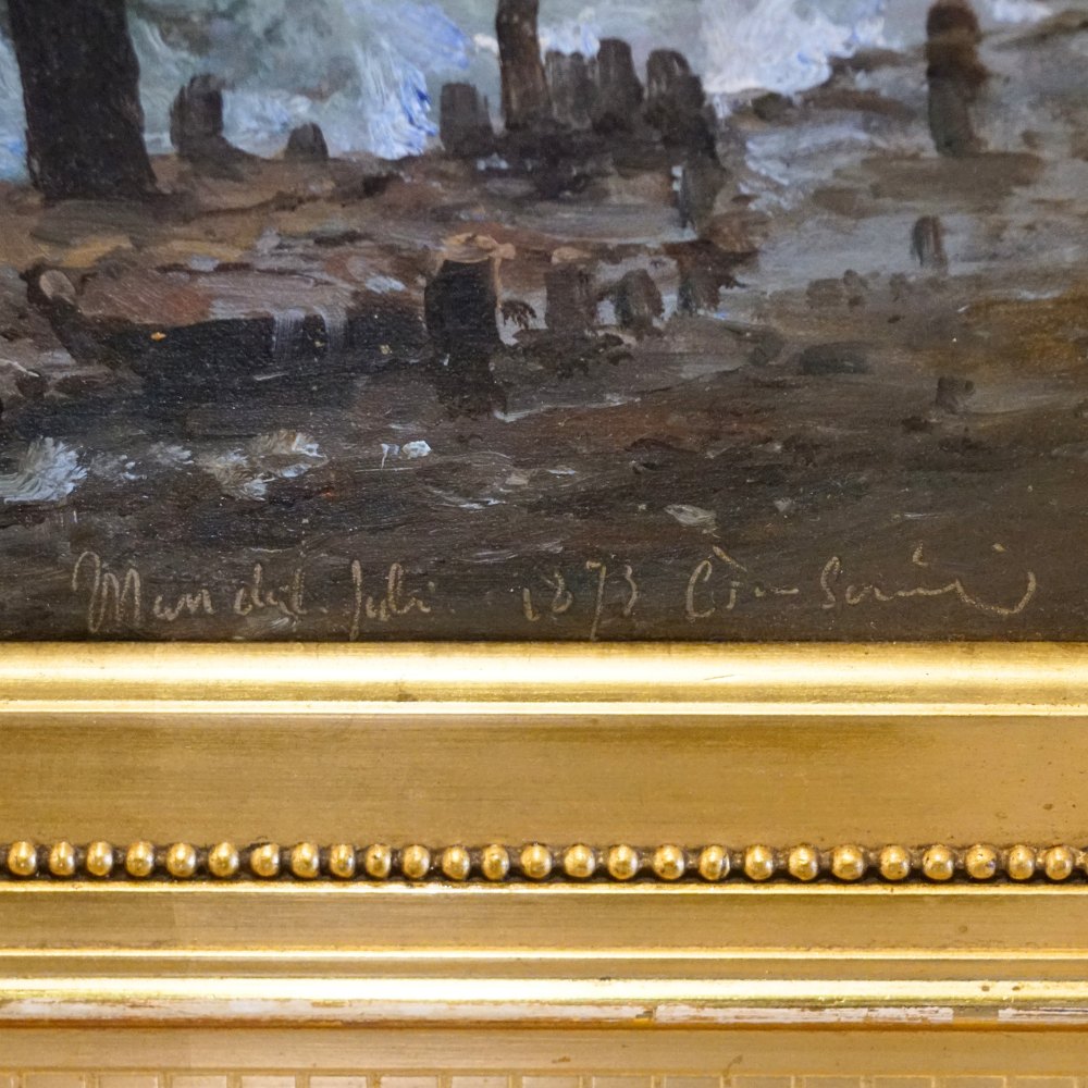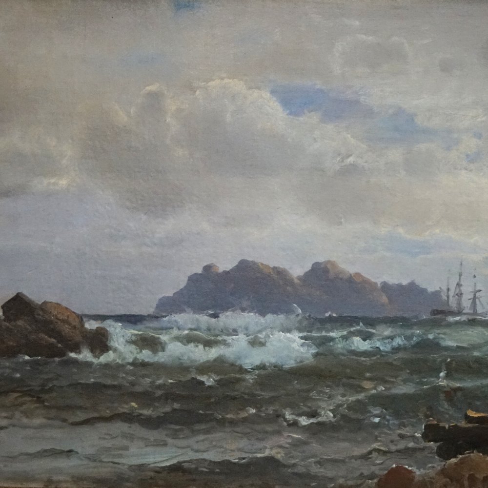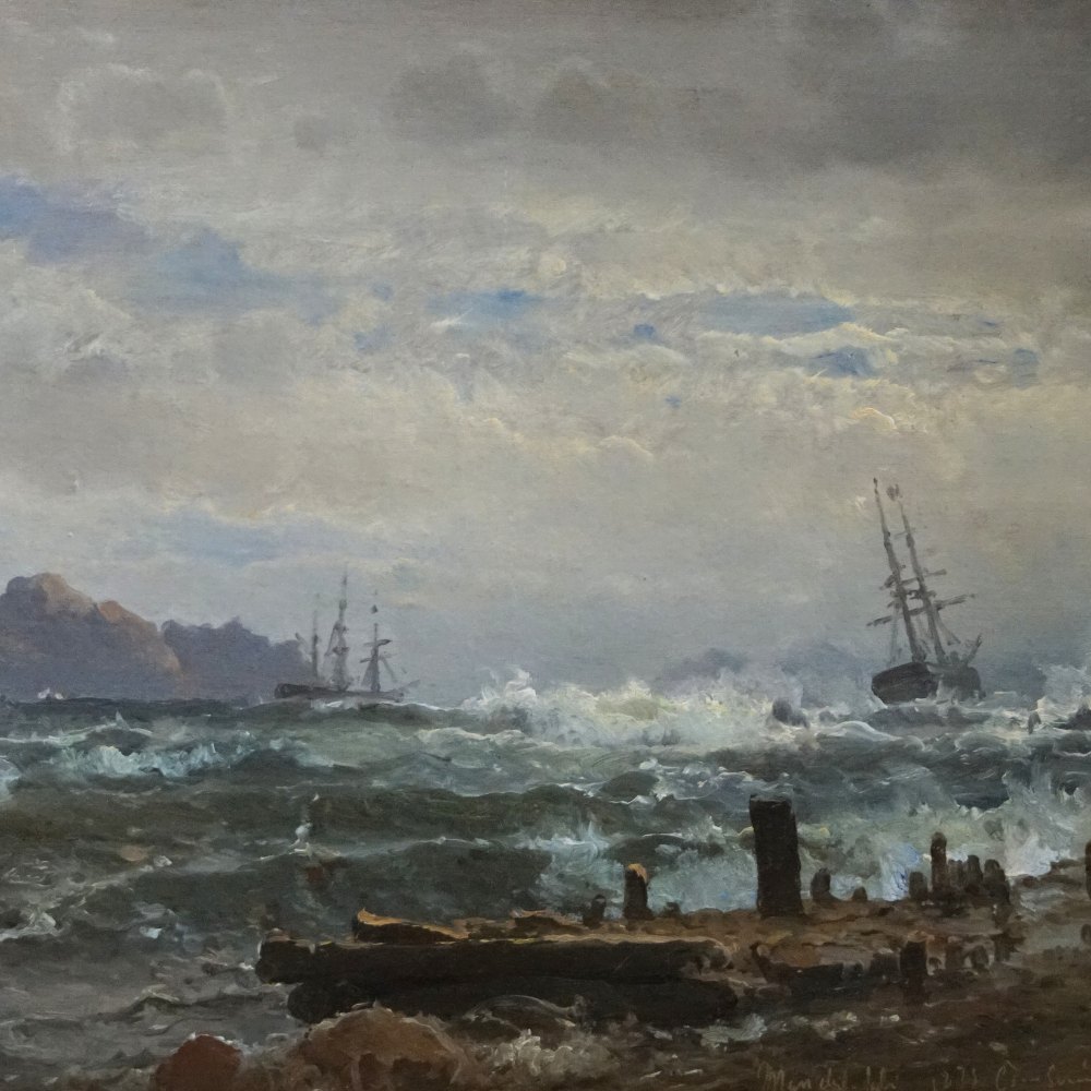 Marine painting by Carl Frederik Sørensen, motif at Mandal in Norway, July 1873. Oil on canvas. Signed "C. F. Sørensen", also "Mandal Norway July 1973".
