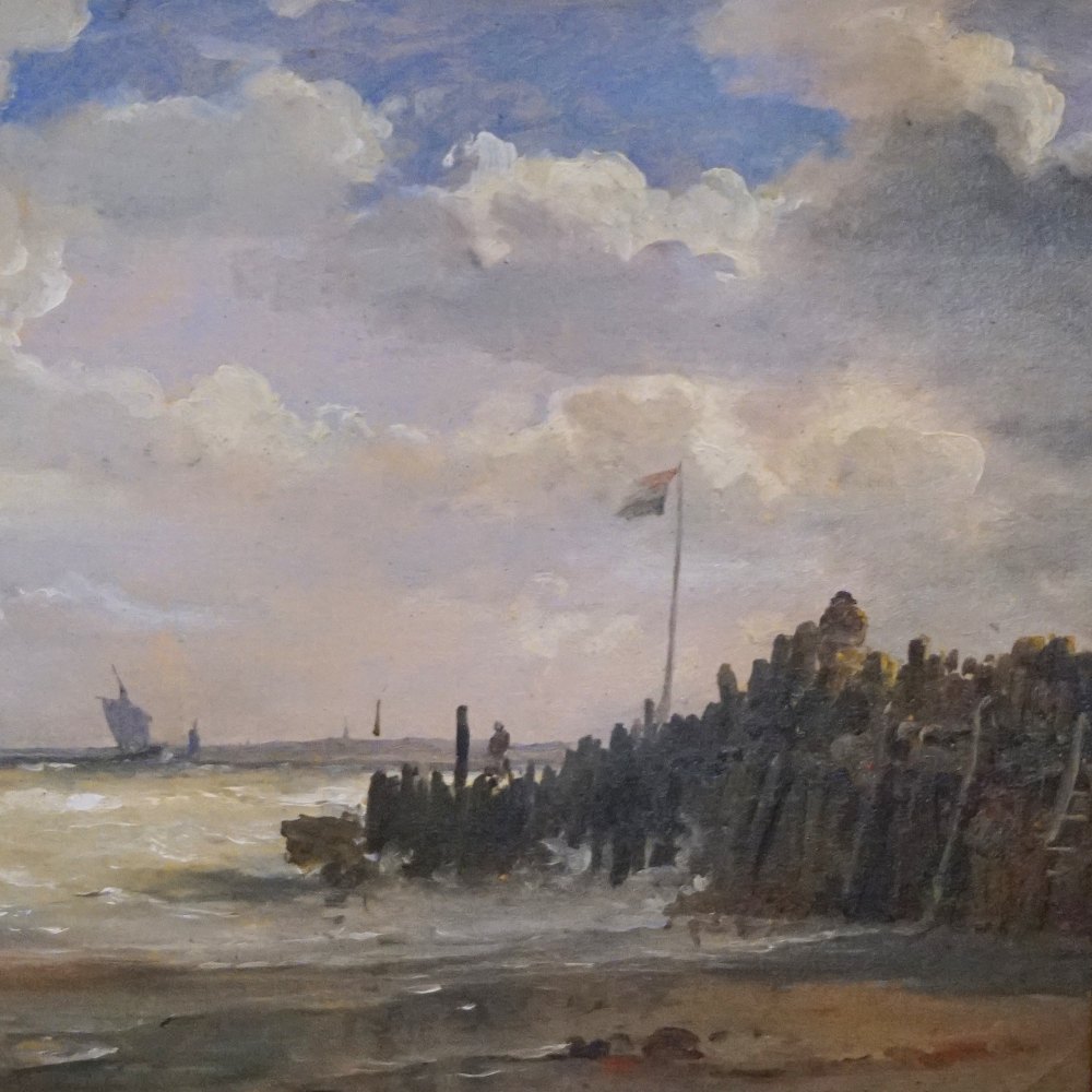 Marine painting by Carl Frederik Sørensen, Holland, 1853. Oil on canvas. Signed "C. F. Sørensen 1853".