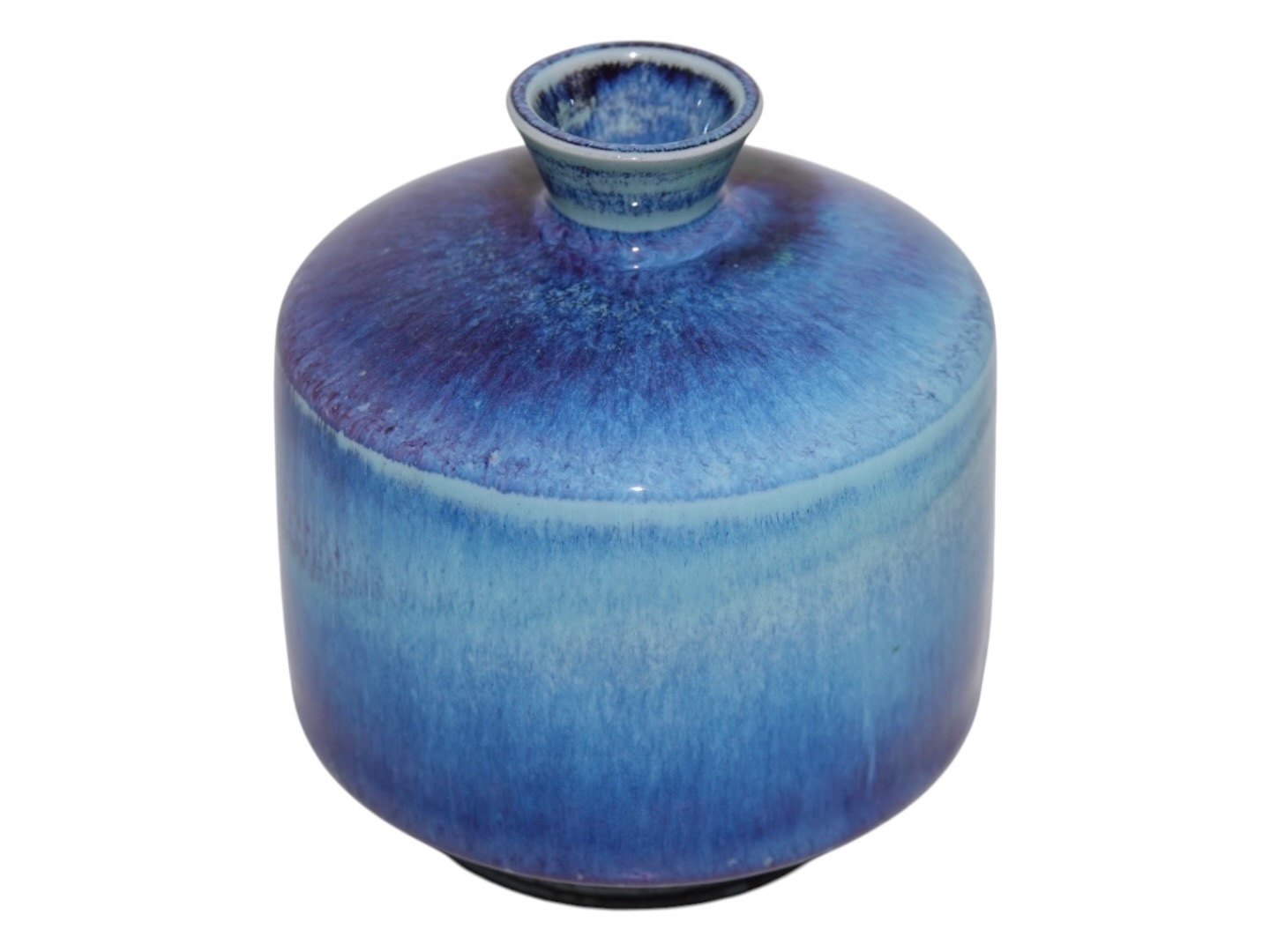 Gustavsberg Studio Sweden art pottery, small Berndt Friberg blue vase with aniara glaze.