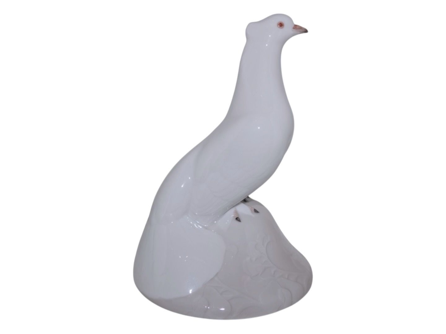 Rare and large Royal Copenhagen figurine, white pidgeon. Originally a small platter has been together with this.