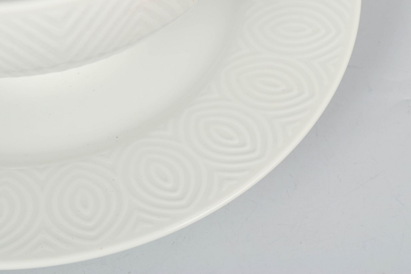 Elegant porcelain sauce boat with refined relief decoration and harmonious organic form, produced for Royal Copenhagen. The form reflects Axel Salto’s characteristic union of functional elegance and sculptural modernism.