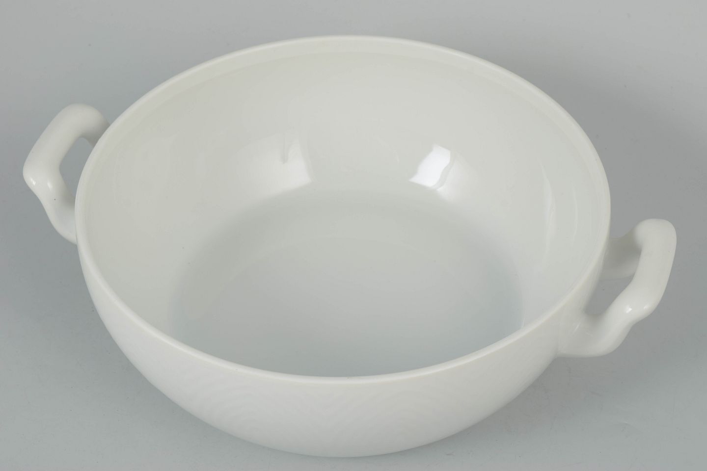 Elegant porcelain tureen with lid, produced for Royal Copenhagen in Axel Salto’s distinctive design language. The design combines functional elegance with refined organic lines, characteristic of Danish modernist porcelain.