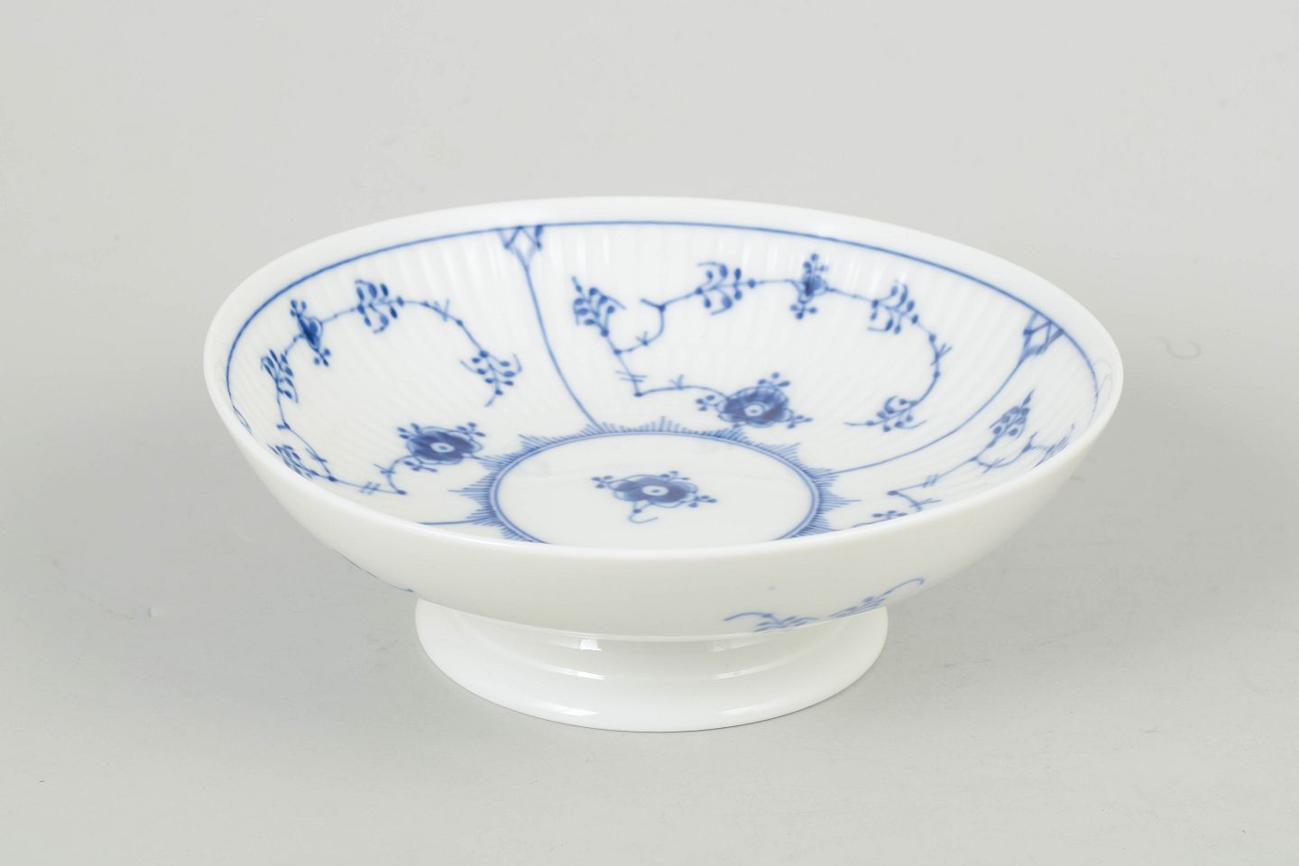 Classic compote from Royal Copenhagen’s Blue Fluted Plain service, model 1/18, crafted in hand-painted porcelain with the iconic cobalt blue pattern. This example is fourth factory quality with three incised cancellation lines from the 1970s.