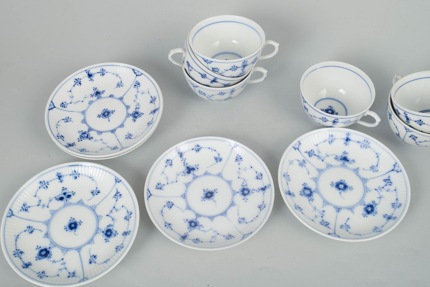 Royal Copenhagen Blue Fluted Plain, set of six coffee cups with matching saucers.