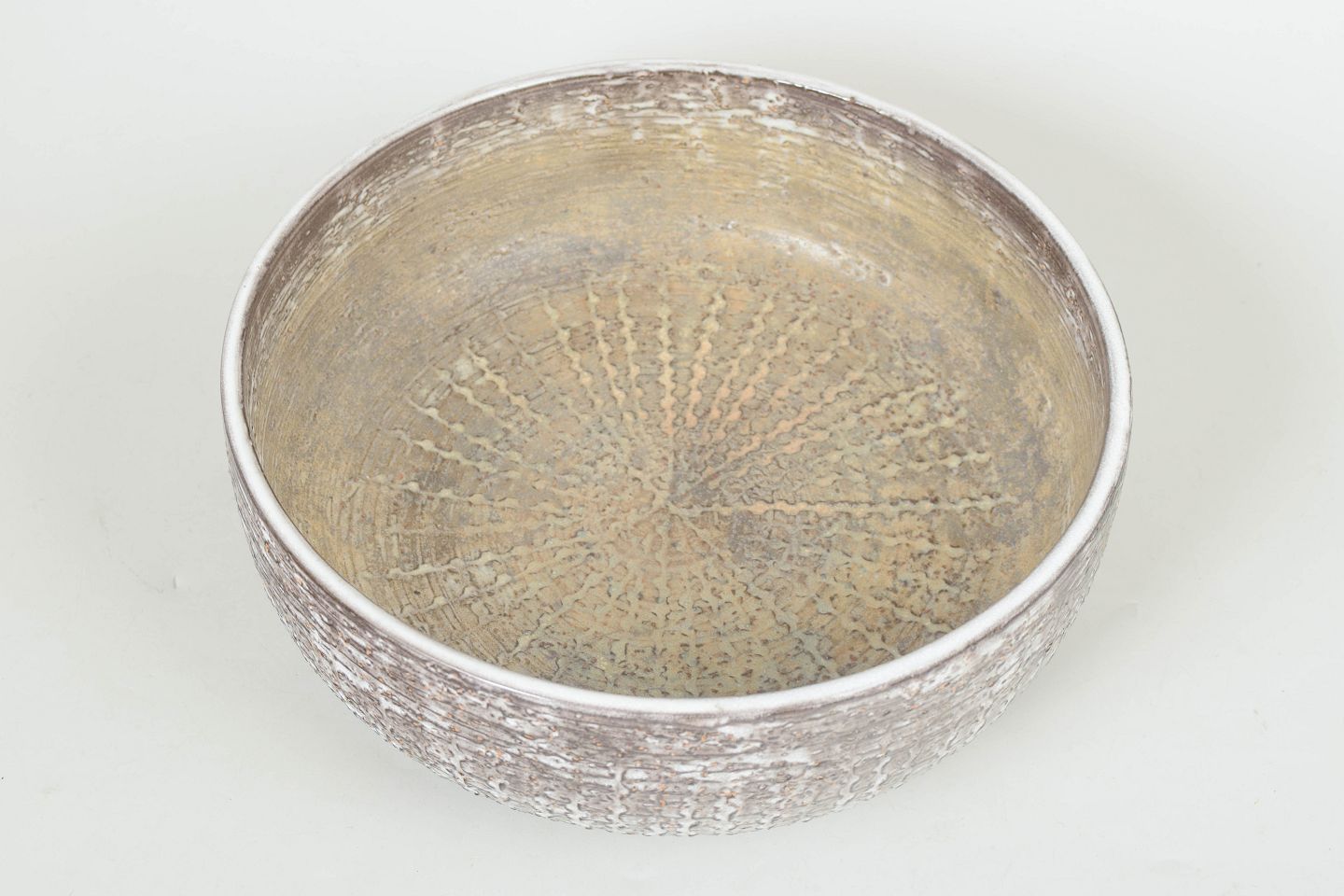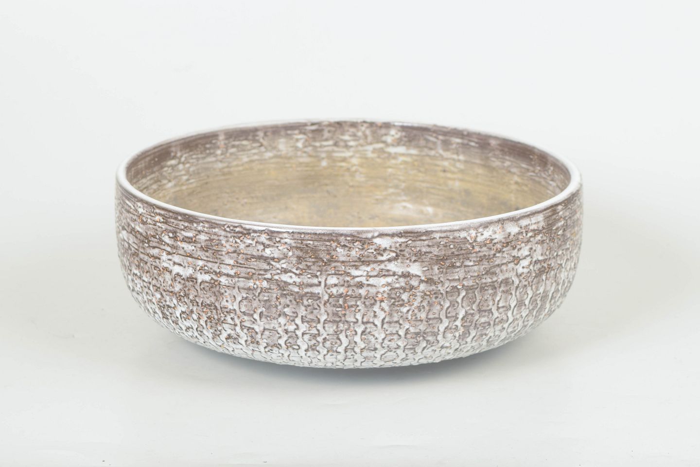 Round decorative bowl model 6024 with textured surface in glazed ceramic featuring organic relief and silver-toned finish.