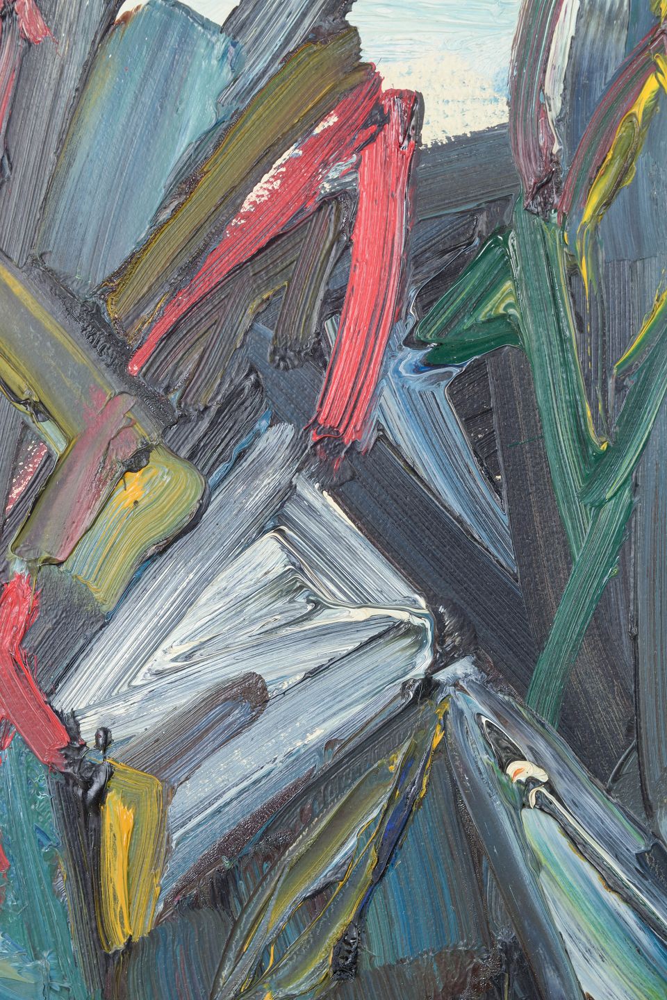Expressive abstract composition executed with impasto brushwork and bold colourism, where modernist forms and spontaneous gesture create a dynamic visual language.