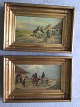 2 Malerier ad Anton Rudolf Derfla - Bosniske husarer på stop ved huse på vejen,
