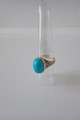 18 karat guldring med cabochonslebet turkis og blåt emaljemønster.
