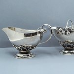 Georg Jensen; A set with sugar bowl and creamer of sterling silver, No 235 B