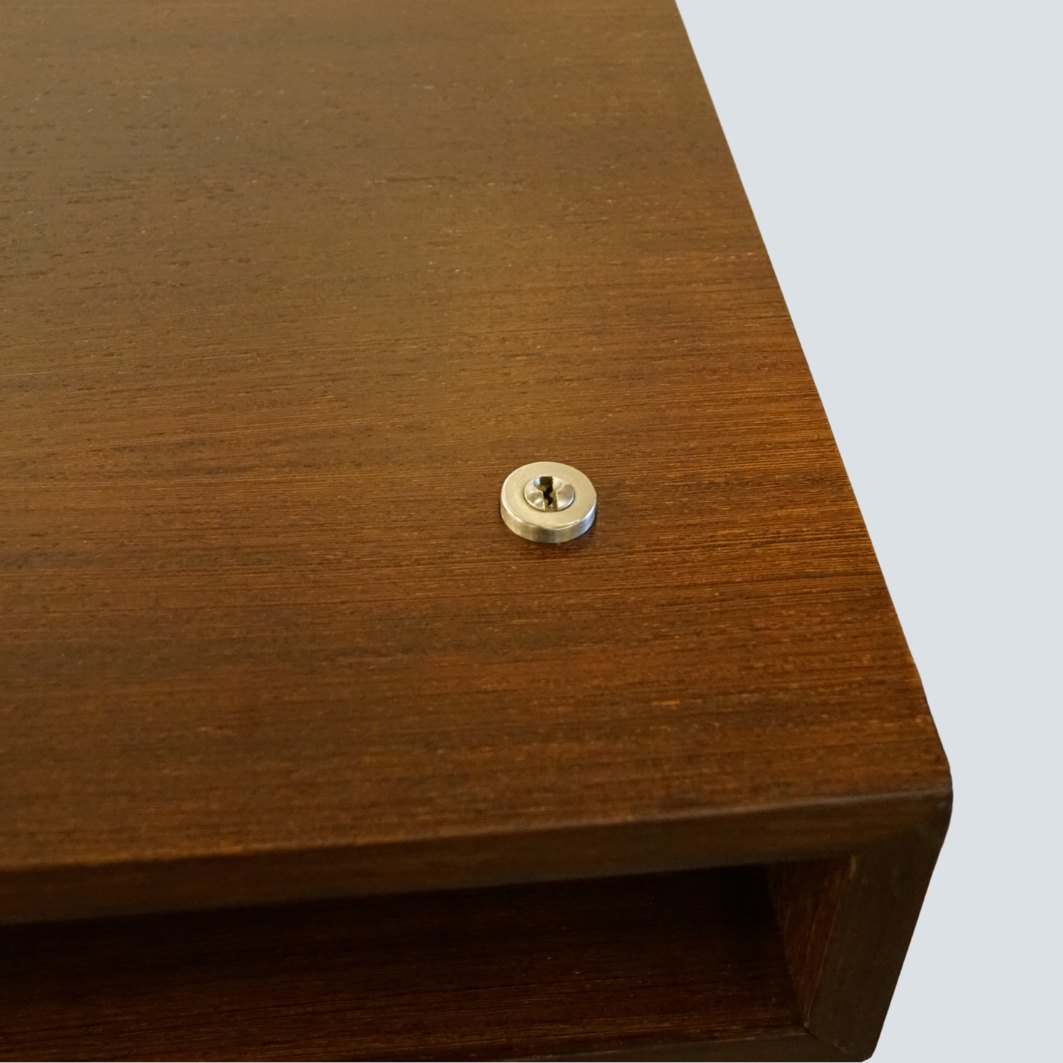 Bodil Kjær freestanding office desk in Wengé wood and chromed steel legs. Four lockable drawers. Drawer module on wheels included. Designed by Bodil Kjær in 1959. Iconic design, also called "The most beautiful desk in the world" and seen in the James Bond movies.