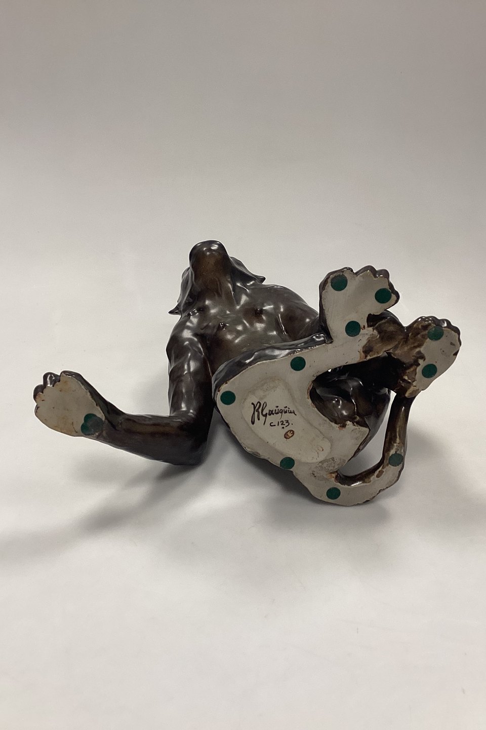 Bing and Grondahl Jean René Gauguin Figurine of Monkey No. 90 or C123. Stoneware with brown/green glaze. Signed JR Gaugain.
