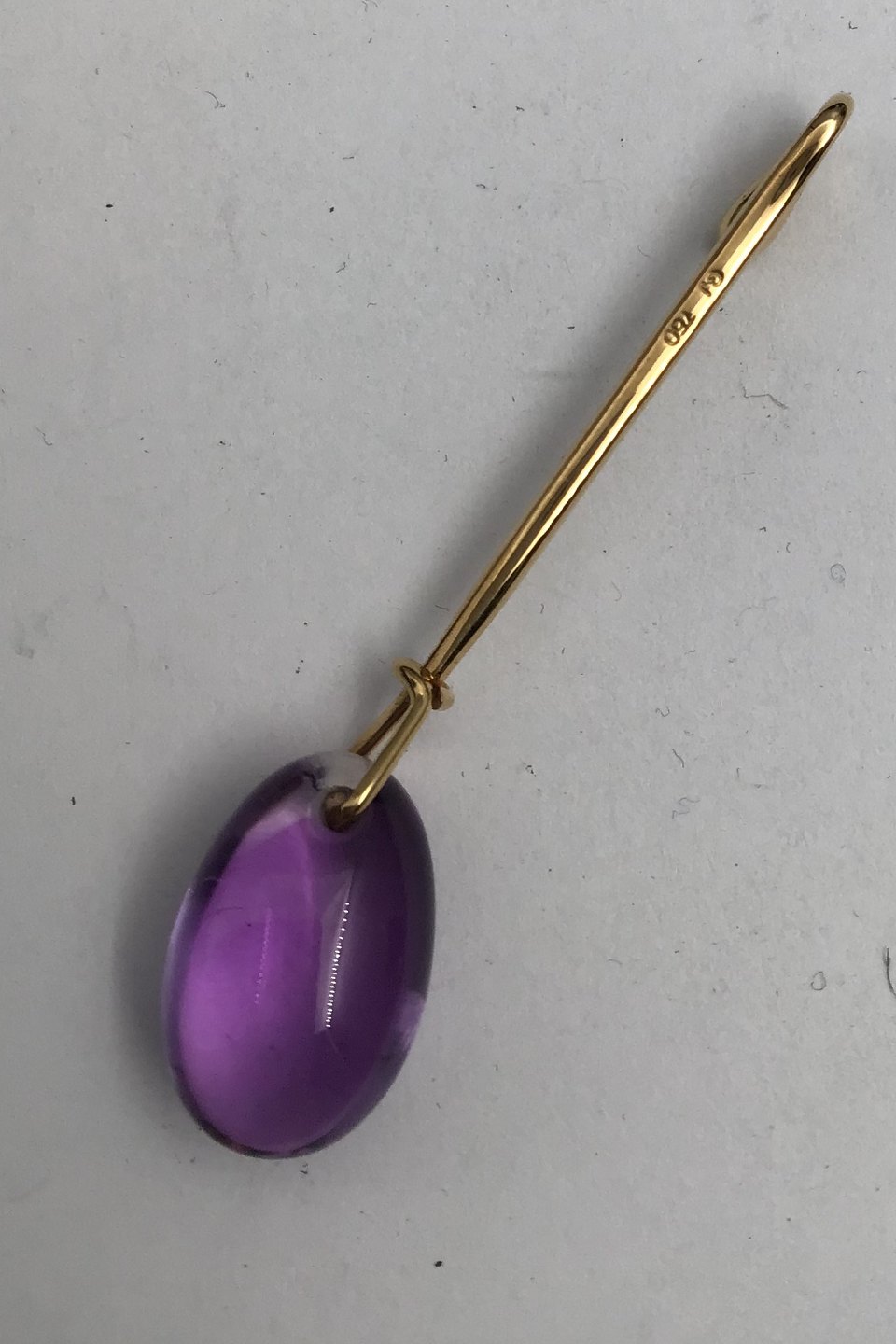 Georg Jensen 18K Gold Pendant Dew Drop No. 1128 Amethyst Torun