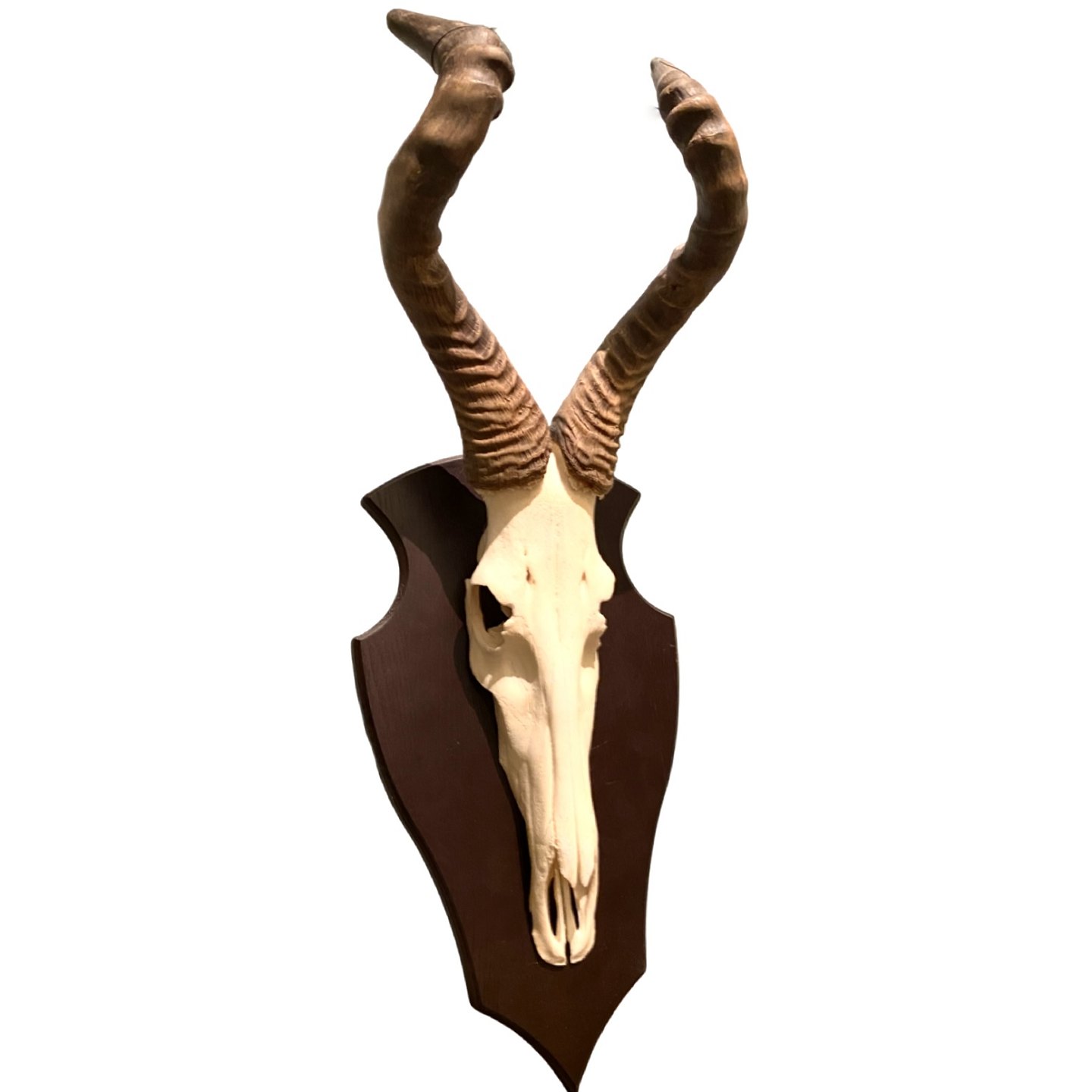 Hunting trophy of Hartebeest (red antelope) mounted on plate H. 90 cm.W. 30 cm.D. 30 cm.