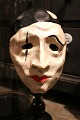 Decorative, old clown mask in painted papier-mâché mounted on old black painted wooden base...