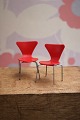 Seven chairs in red plastic, H: 5.6cm. - PRICE: 250 kr. per piece. (2 pcs.)
