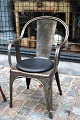 Classic French Tolix lounge chair with armrests in acid-treated, polished and lacquered metal. Round seat cushion in black leather included.