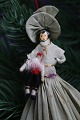 Old Christmas tree ornament, nice lady holding a small Santa Claus doll, made of colored crepe paper. H: 15cm. Item number: Jul nr. 648