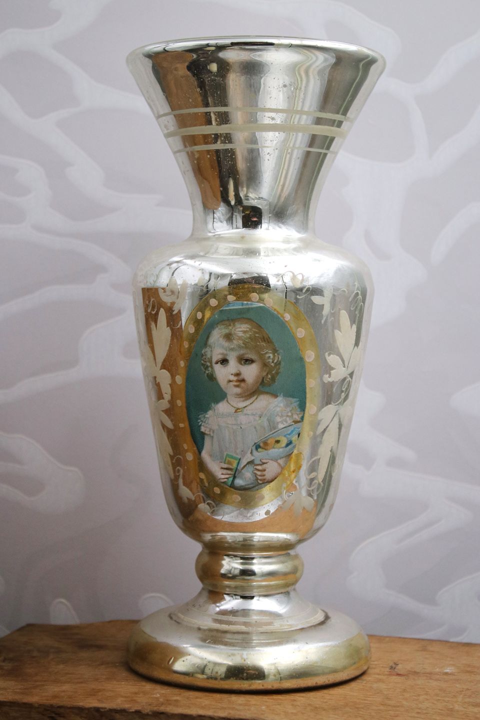with painted leaf tendrils and hand-painted portrait of a little girl