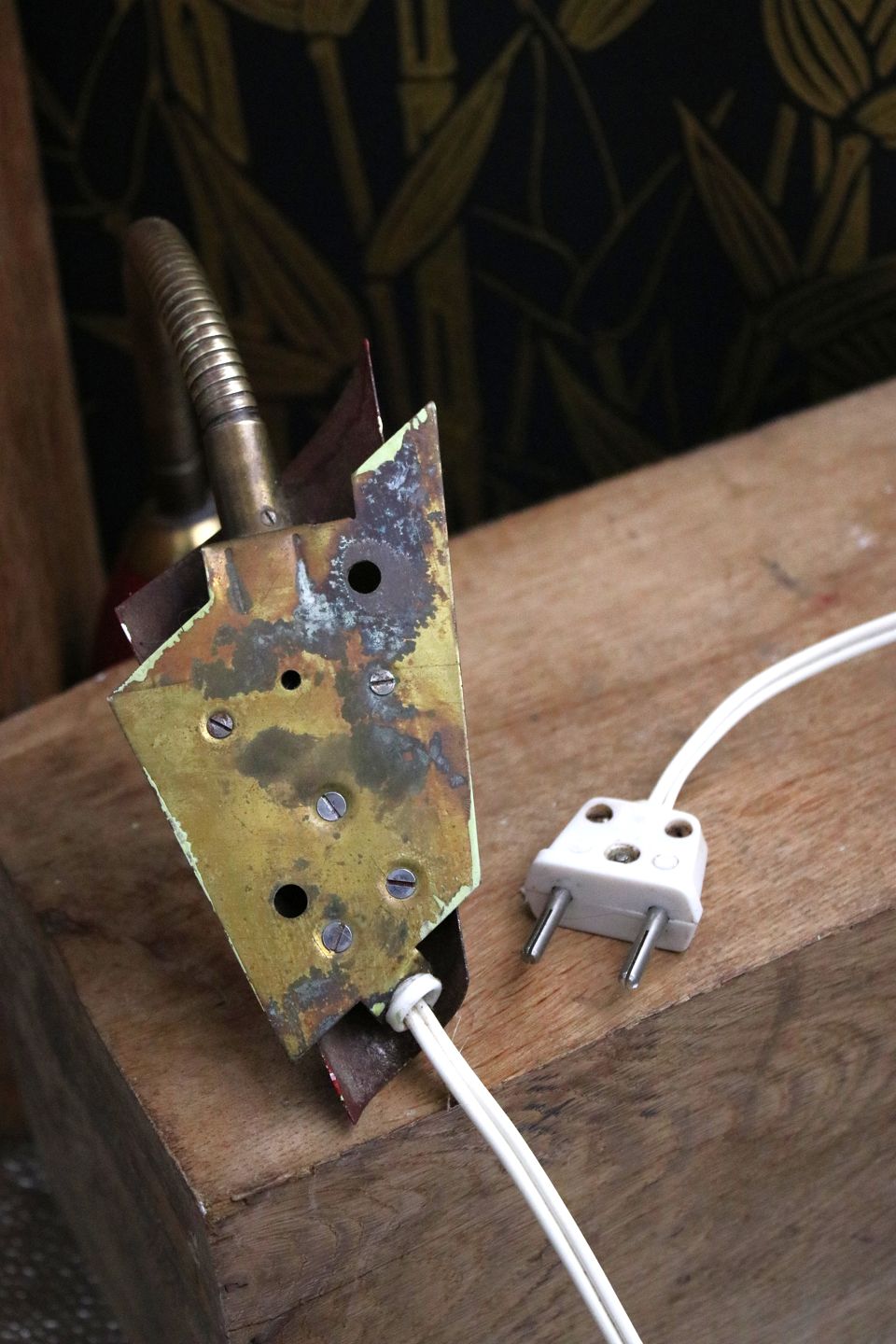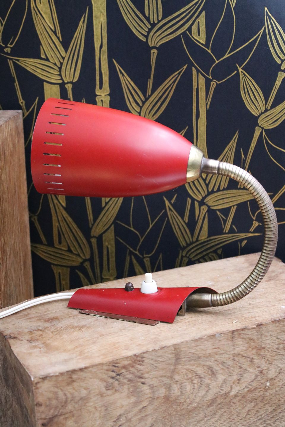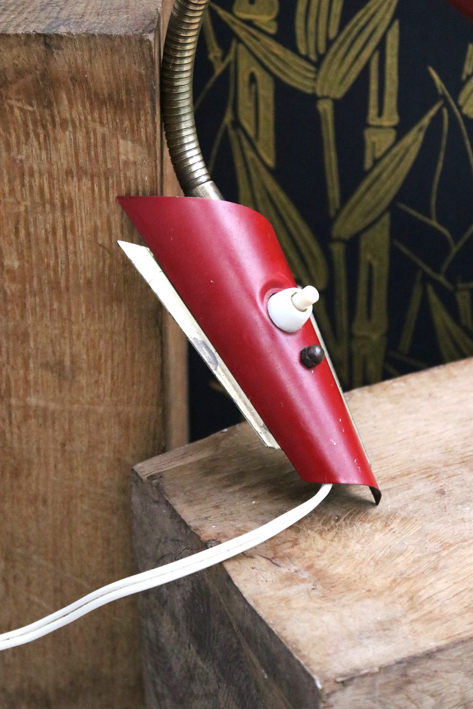 A pair of old retro wall lamps in red painted metal and brass from the 50s. Lampshade L: 14cm. Dia: 8.5cm. Item number: Væglamper fra 50érne