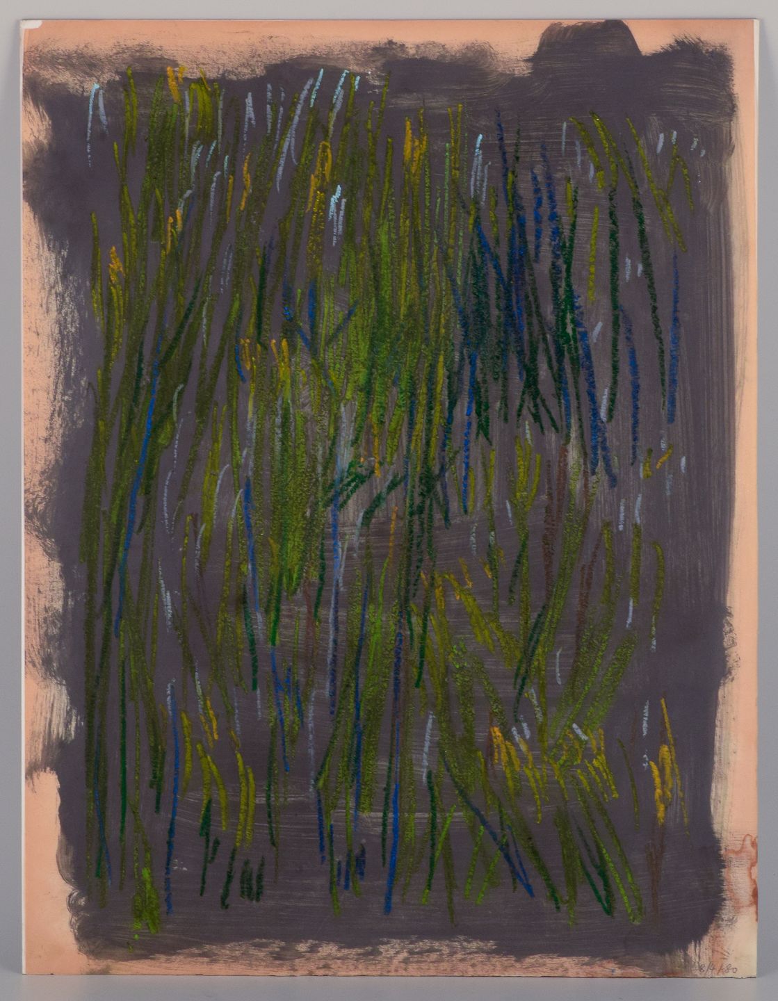 Monique Beucher (1934), French artist. Mixed media on paper. Abstract composition. Colorful palette. Dated 1980. In excellent condition. Slightly yellowed. Dimensions: 50.0 cm x 65.0 cm.