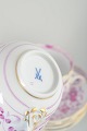 Meissen, Europas første porcelænsfabrik grundlagt i 1710, blev hurtigt berømt for sine udsøgte håndmalede dekorationer og høje kvalitet. "Indian" mønsteret, introduceret i 1740’erne og inspireret af asiatisk porcelæn, er et af manufakturens mest klassiske designs. Den rosa variation, "Pink Indian", er særlig eftertragtet for sit elegante udtryk og udgør en tidløs tilføjelse til ethvert teselskab.