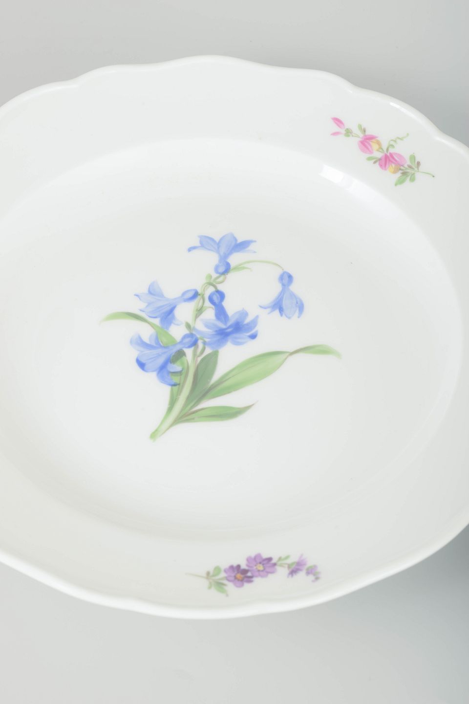 Meissen har siden begyndelsen af 1700-tallet været Europas førende porcelænsfabrik, kendt for sin håndmalede dekoration og tekniske perfektion. Blomsterdekorationerne, ofte inspireret af naturstudier, blev et symbol på manufakturens klassiske stil og håndværksmæssige kvalitet.