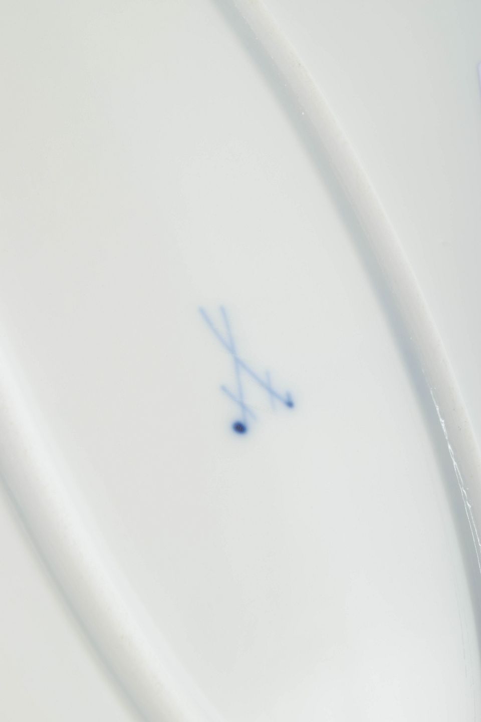 Stemplet med Meissens korslagte sværd, annulleret med fire indridsede streger.