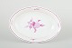 Hand-painted oval porcelain bowl decorated with lilac floral compositions and a gently scalloped rim. Classic Meissen design with fine pink-lilac detailing.