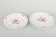 Set of four hand-painted porcelain lunch plates decorated with lilac floral compositions and a gently scalloped rim. Classic Meissen design with fine pink-lilac detailing.