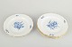 Hand-decorated porcelain with hand-painted blue floral motifs and gilt accents along the rim. Classic lightly scalloped form.