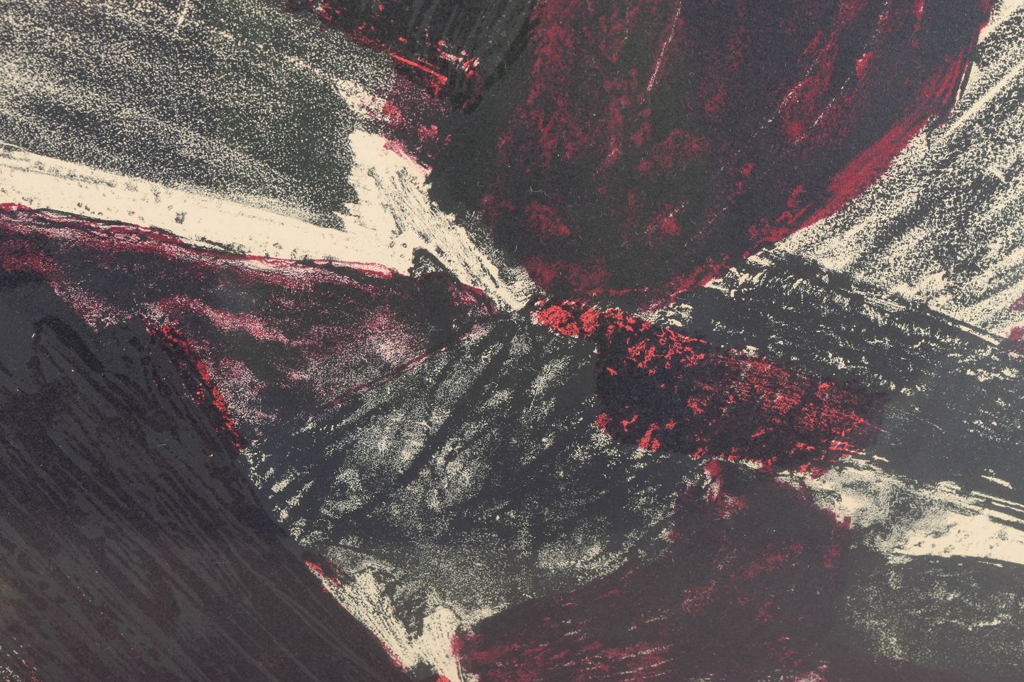 Abstract composition from 1957 with dynamic movement and contrasting color fields, characteristic of Bonnier’s experimental approach to postwar Scandinavian non-figurative art.