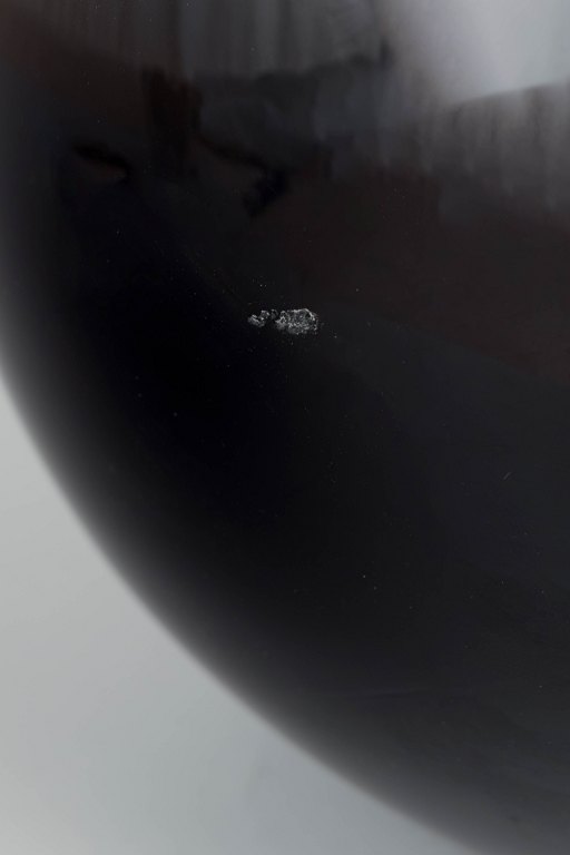 Mouth-blown Art Deco glass vase in a deep, near-black tone with a rounded body and gently flared rim. Unsigned, as is common for the period and for many of Notini’s works for Pukeberg.