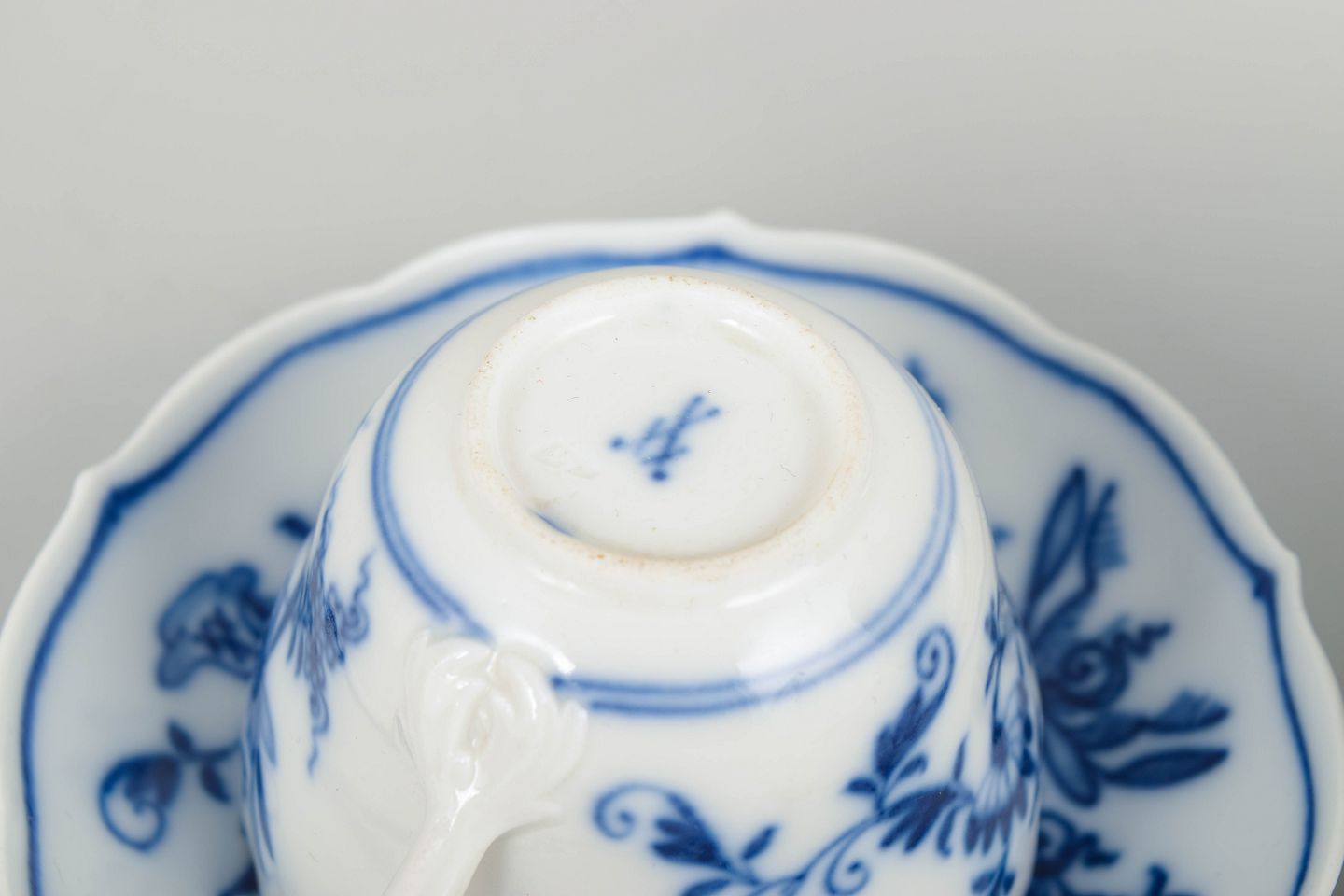 Meissen Blue Onion Pattern, four espresso cups with matching saucers.