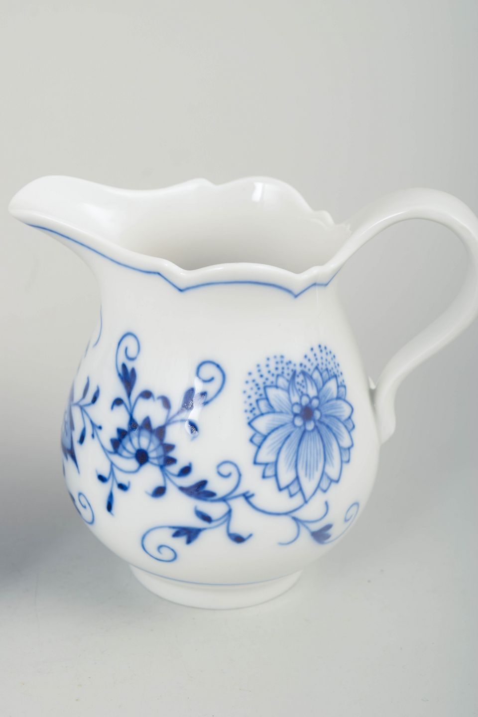 A set consisting of a classic lidded sugar bowl and a creamer in the iconic Zwiebelmuster (Blue Onion) pattern, hand-painted in cobalt-blue underglaze. Elegant forms and crisp decoration typical of Meissen’s mid-20th-century production.