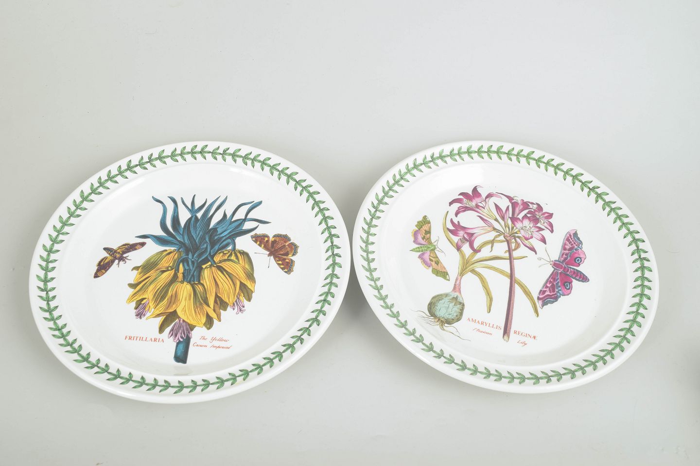 Portmeirion is an English manufacturer renowned for decorative tableware with nature-inspired designs. The “The Botanic Garden” series is based on classical botanical illustrations combined with a green leaf border, giving the pieces a timeless character and making the series one of Portmeirion’s most iconic and collectible.