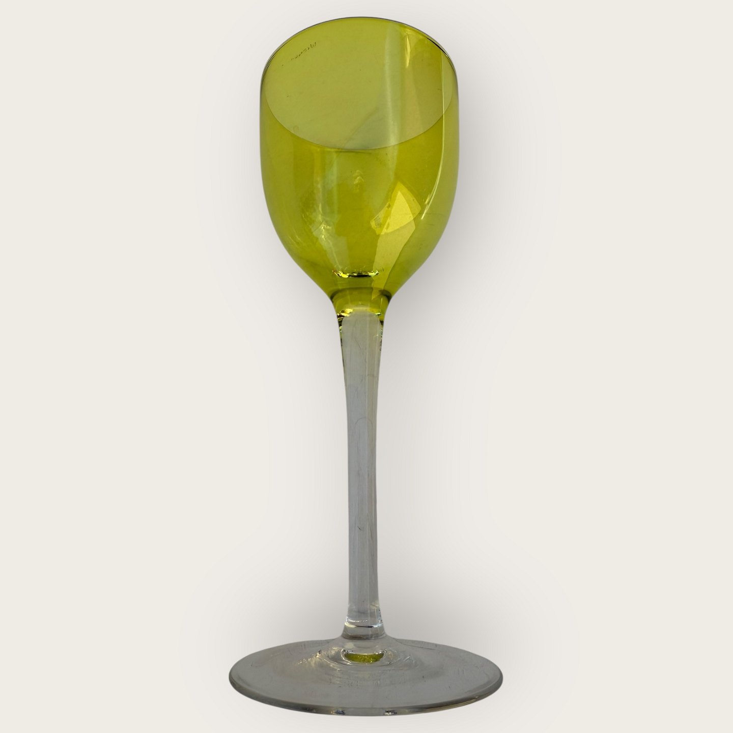 Baccarat, Perfection, Rhine wine glass on a high stem and with a green bowl, 19cm high, fine condition.