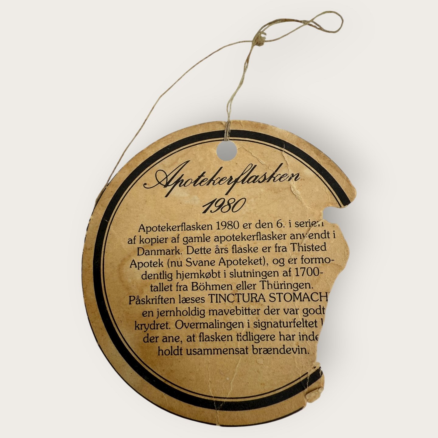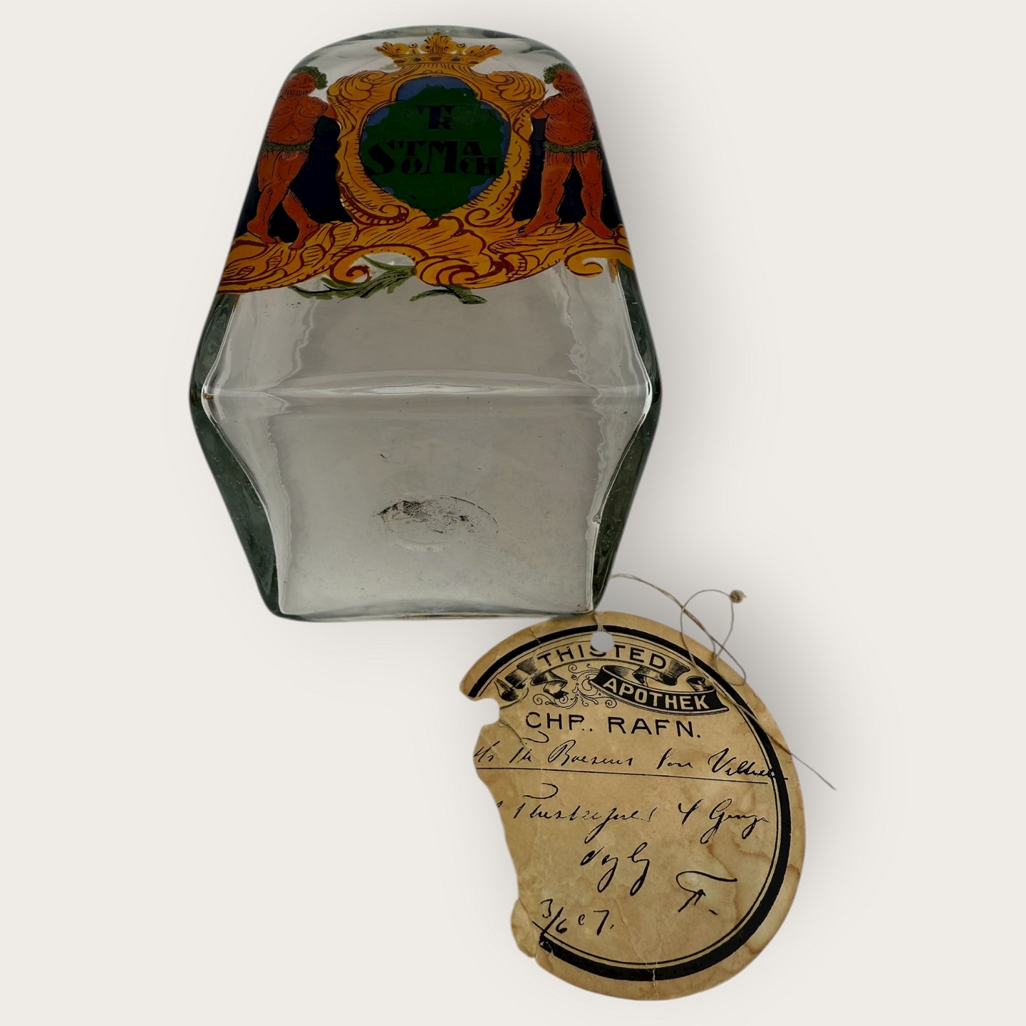 Holmegaard apothecary bottle from 1980, Tinctura Stomach, Dimensions: 18x8x8cm, the bottles are mouth-blown copies of original old apothecary bottles, Signed Hg80.