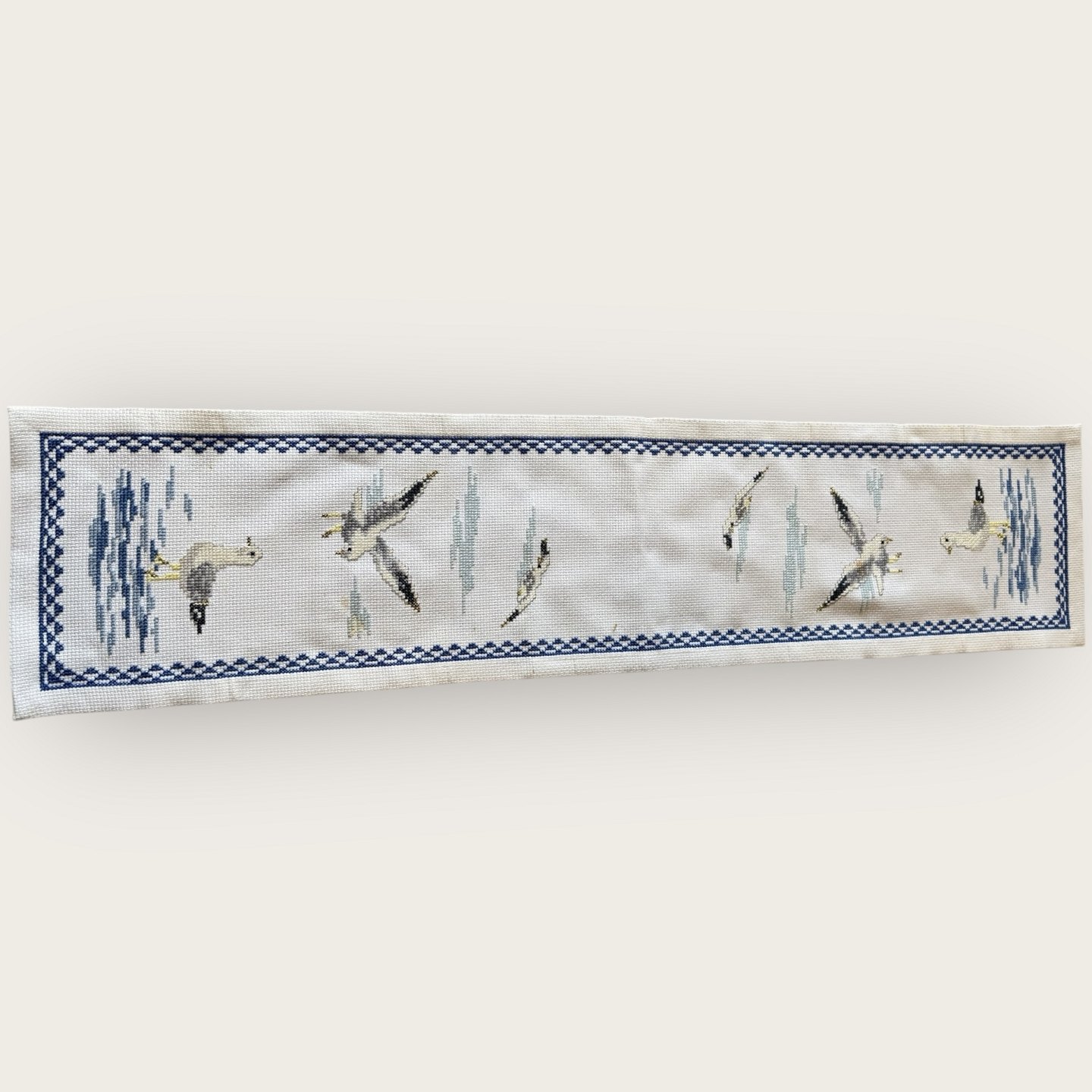 Hand-sewn table runner with seagull motif, 90x20cm *good condition*